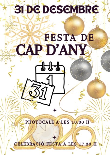 El 31 de diciembre celebraremos una de las fiestas más esperadas del año: la Festa de Cap d’Any. Una jornada llena de alegría, música, recuerdos y tradición para despedir el 2025 y dar la bienvenida al nuevo año 2026 en buena compañía.